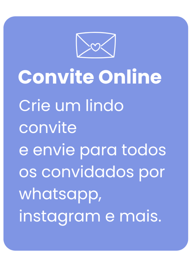 Organize tudo em minutos, do convite ao presente perfeito, sem estresse e do seu jeito.